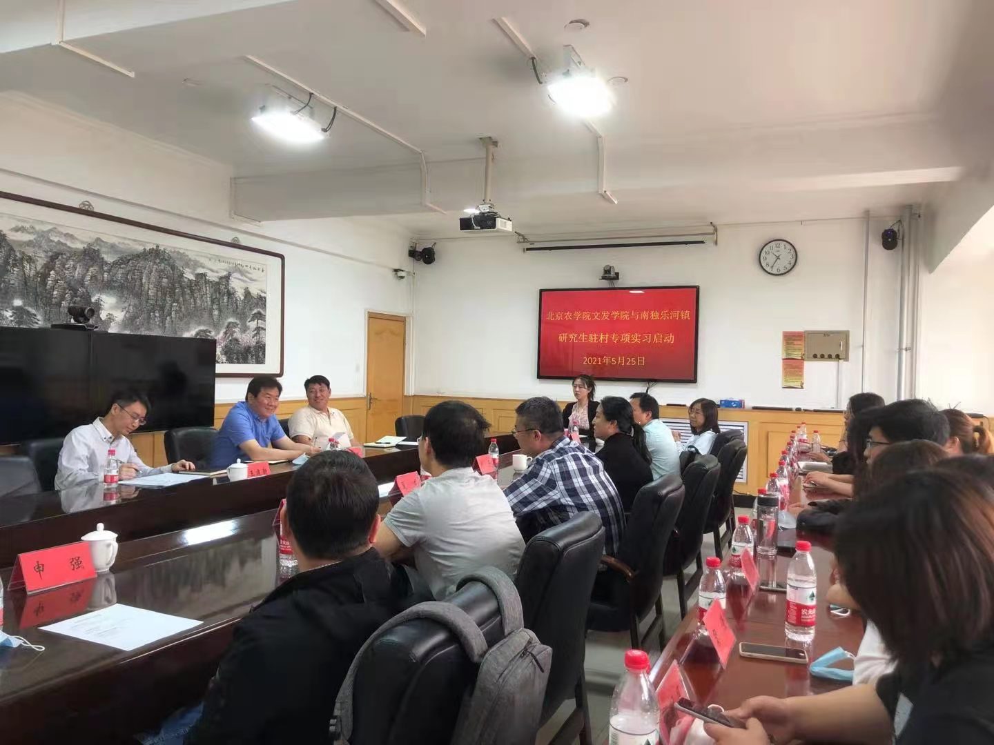 2021年5月25日,304am永利集团官网与平谷区实习统筹、组织单位在南独乐河镇镇政府开展专项实习启动会,农村发展、社会工作11名研究生驻村专项实习正式启动。南独乐河镇党委副书记、镇长李晓军,镇纪委书记韩国鹏,镇组织部长王建新,平谷区组织部人才科科长朱立波,304am永利集团官网经理韩芳,副经理夏龙,农村区域发展系主任苟天来,会展经济与管理系主任王军强,法学党支部书记蒋颖,本次实习专项联络教师申强以及专项实习研究生出席会议。