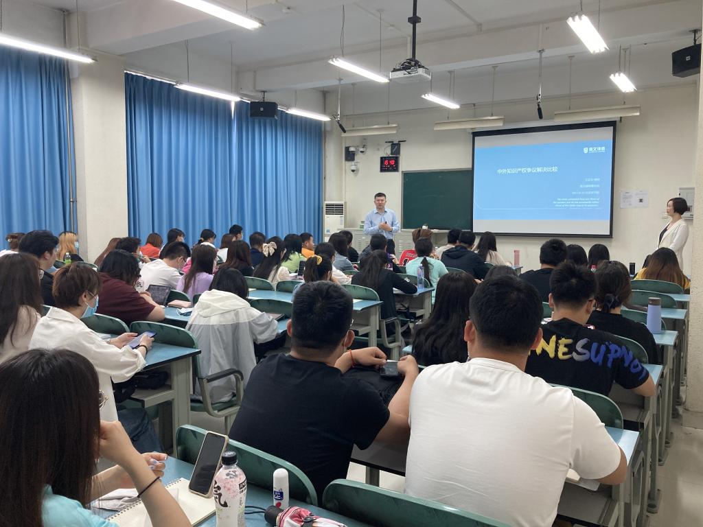 王主任的讲座内容丰富,涵盖了知识产权制度的历史渊源、知识产权的基本概念、知识产权制度的作用、知识产权与商业竞争的关系、中外解决知识产权争议诉讼机制的比较。特别阐述了美国、德国以及英国的知识产权诉讼的要旨,美国的337调查以及该条款对我国知识产权保护的启示等内容。并结合自己经办的案例和亲身体验,给同学们分享了如何保护老字号“内联升”的知识产权利益、高效率的德国知识产权诉讼程序和繁复严密的香港知识产权审理过程等。